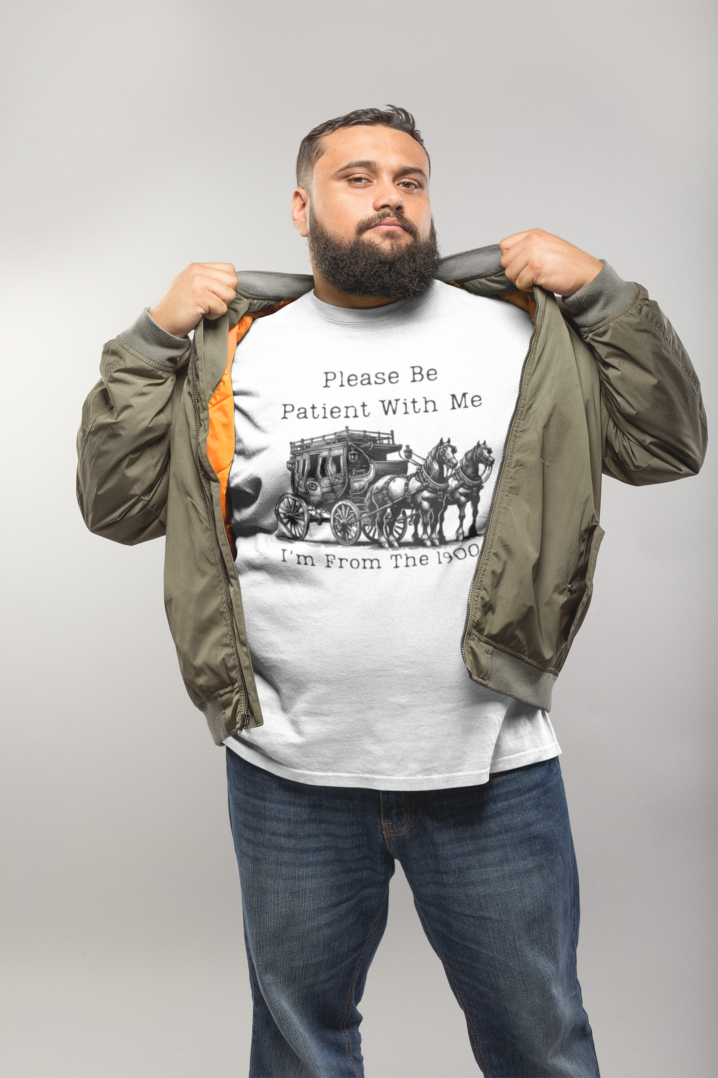 Embrace nostalgia and humor with this fun and relatable t-shirt! Featuring the phrase "Be Patient with Me, I'm from the 1900s," this design is perfect for anyone who remembers life before smartphones, streaming, and social media.