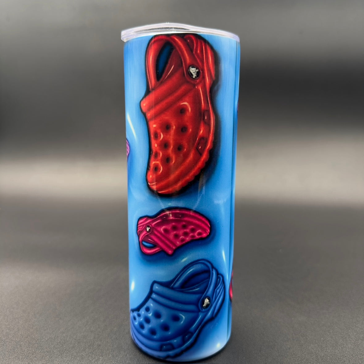 Take a walk on the wild side with the Croc Tumbler! Featuring a quirky croc shoe design, this tumbler will add some fun to your daily routine. Keep your drinks hot or cold while showing off your unique style. A must-have for any croc lover. (No, not the reptile!)