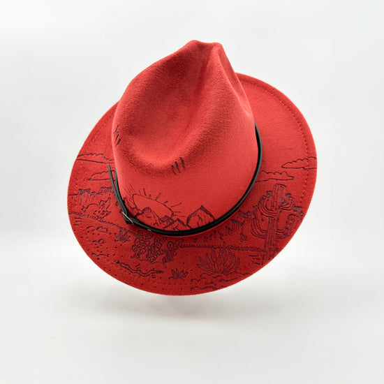 The Az living Fedora Hat features a custom burn design, adding a unique touch to this classic Arizona fedora. Made with high-quality materials, this hat is perfect for those looking to elevate their style with a touch of western flair.