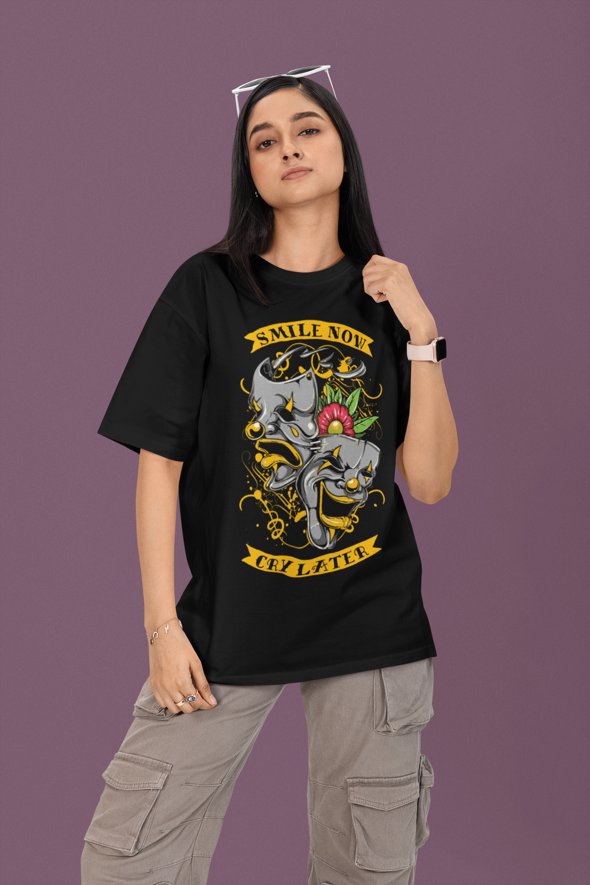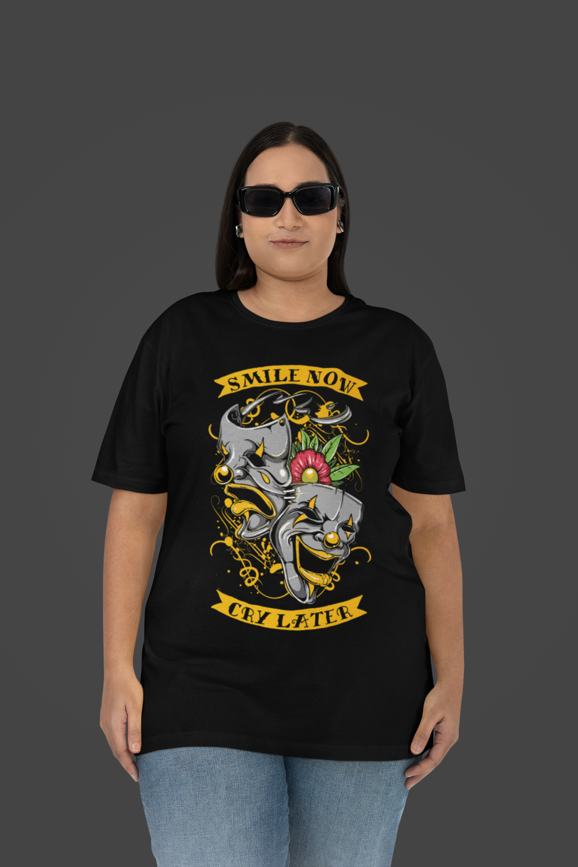 Bold, expressive, and timeless—our Smile Now, Cry Later T-shirt is a statement piece that blends drama with style. Featuring the iconic dual-mask concept, this design represents the highs and lows of life, a theme deeply rooted in Hispanic culture. Often associated with Chicano art, street culture, and the passion of teatro (theater), these masks symbolize the balance between strength and vulnerability.